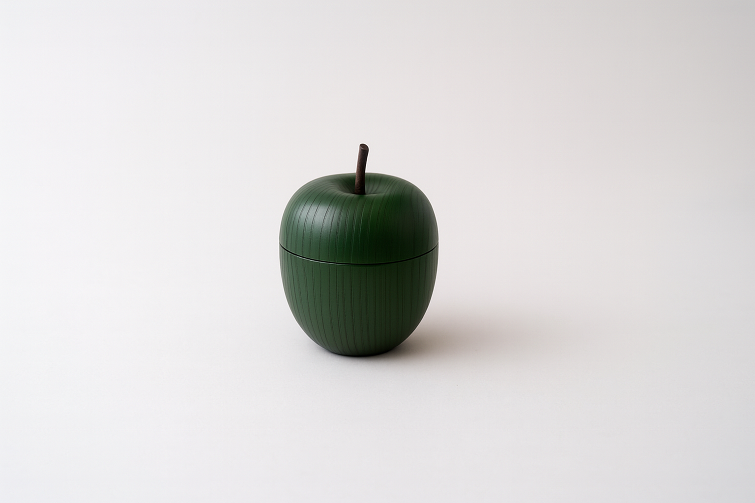 A tiny apple-shaped vessel that captures the beauty of Japanese wood and urushi lacquer craftsmanship.